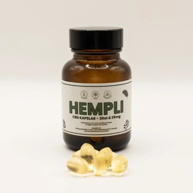 Kapslarna är baserade på GMO-fri hampa och produceras enligt europeiska kvalitetskrav, med fokus på renhet och stabilitet.